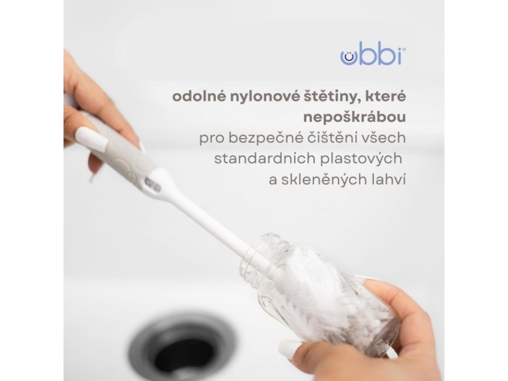 - odolné nylonové štětiny, které nepoškrábou, pro bezpečné čištění všech standardních plastových a skleněných lahví