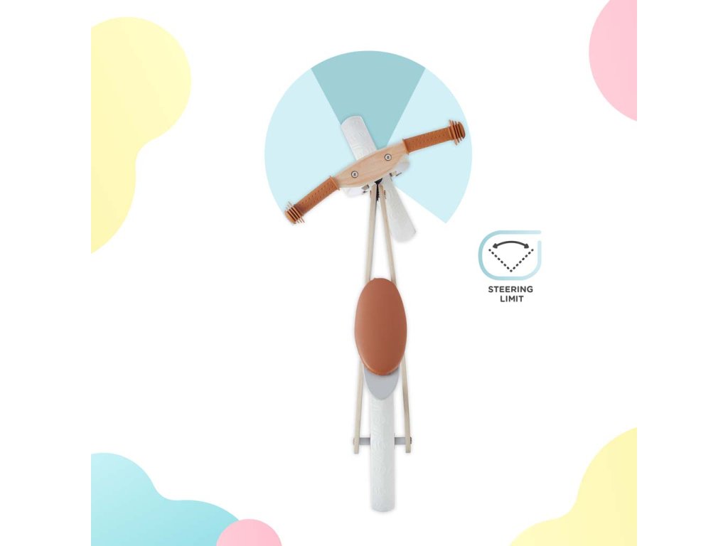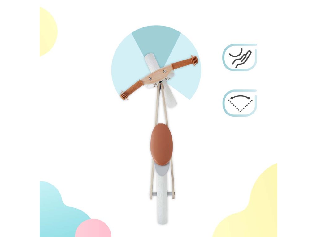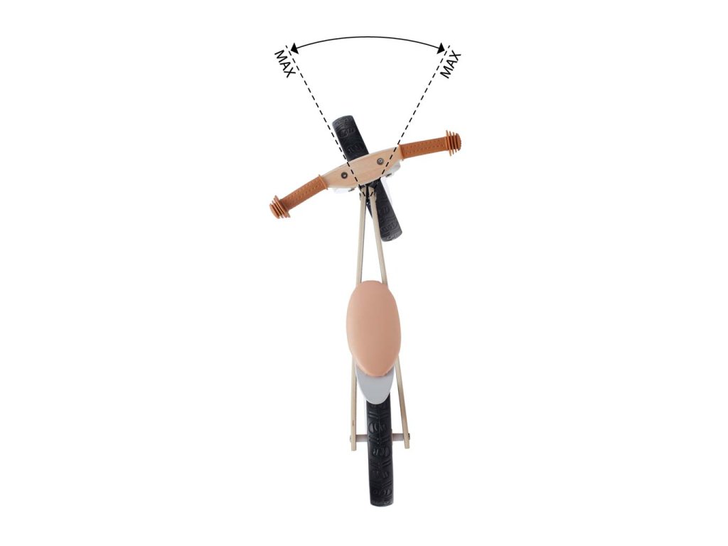 - řídítka mají speciální ochranu (blokádu zatáčení) která omezuje úhel zatáčení a zabraňuje pádu dítěte. Usnadňuje ovládaní odrážedla.