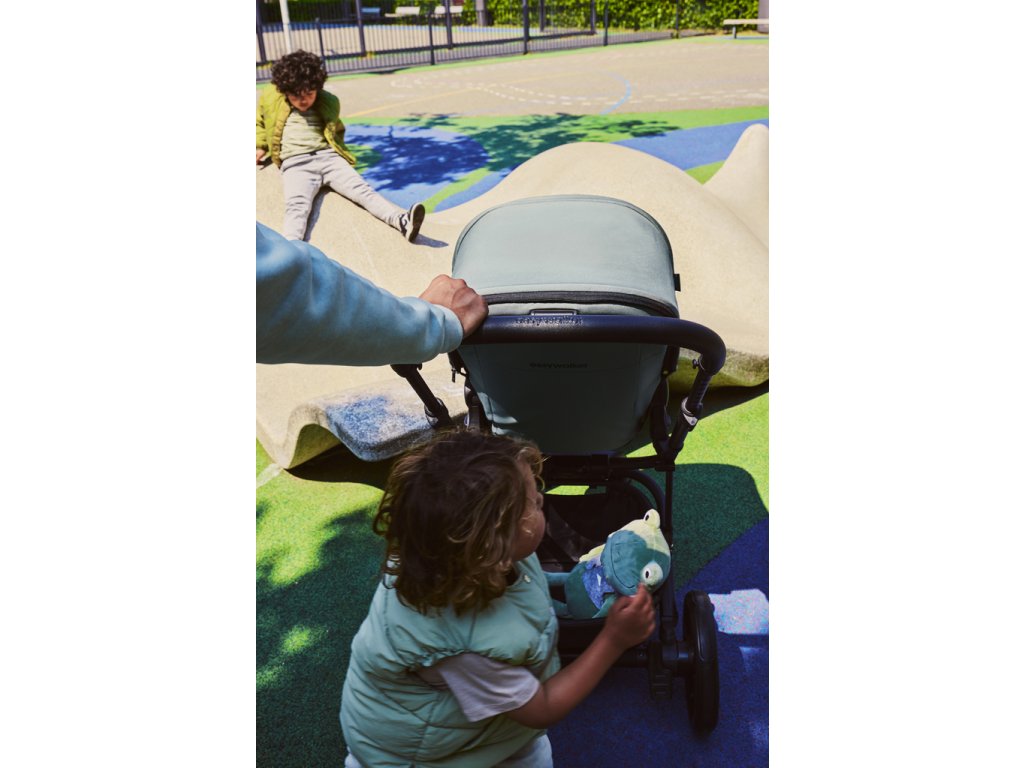 Ať je počasí jakékoli, není třeba se bát. Vaše miminko zůstane ve stínu nebo pěkně v suchu díky extra velké stříšce Harvey, která poskytuje ochranu před sluncem UPF 50 a je vodoodpudivá.
