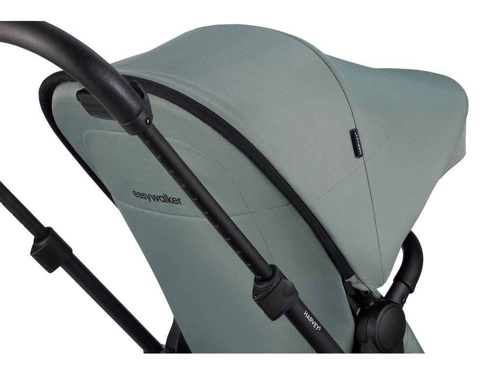 Ať je počasí jakékoli, není třeba se bát. Vaše miminko zůstane ve stínu nebo pěkně v suchu díky extra velké stříšce Harvey, která poskytuje ochranu před sluncem UPF 50 a je vodoodpudivá.