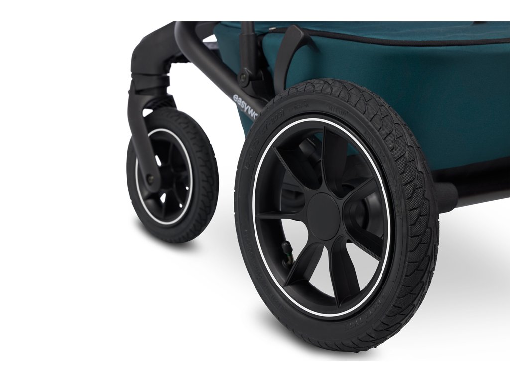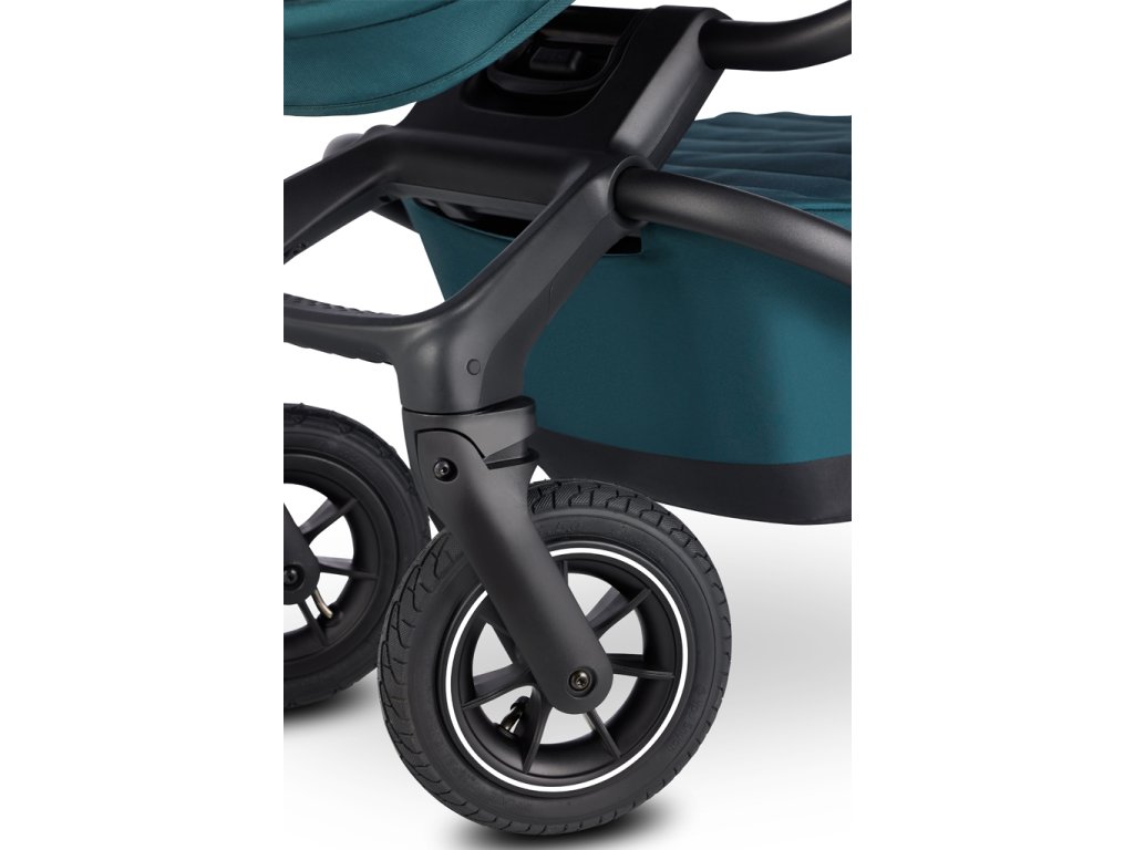 - Součástí kočárku jsou odolná gelová kola i nafukovací kola vhodná do jakéhokoliv terénu