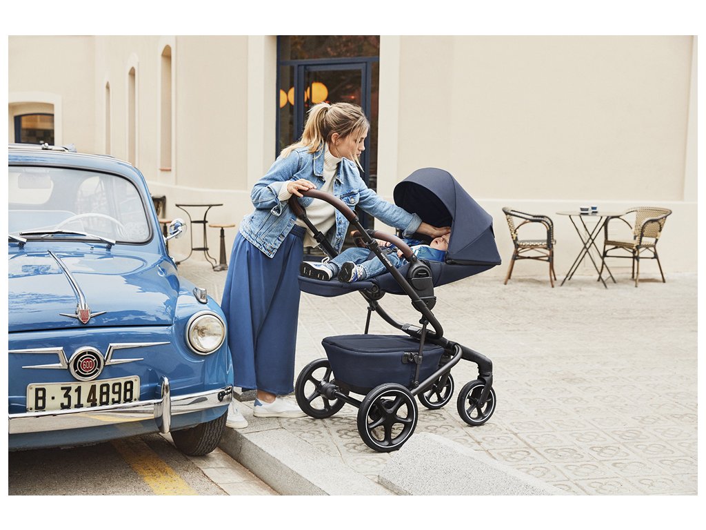 Vaše dítě bude mít vždy pohodlí v mimořádně prostorné, pohodlné korbičce s ochranným polštářem. A časem bude toto pohodlí pokračovat i ve sportovní sedačce, kterou lze sklopit úplně do roviny, čímž zajistí klidný spánek na procházkách. Mysleli jsme také na vaše pohodlí. Lehce měnitelná bezstupňová rukojeť se posouvá do libovolné výšky a sedátko lze nastavit do čtyř různých poloh, a to jen jednou rukou. Pokud jde o úložný prostor, nákupní košík je nejen velmi prostorný, ale také odnímatelný, což usnadňuje vybalení nákupu. Navíc, pokud budete chtít Jimmey sundat, jeho přeměna na kompaktní 12kilogramový balík vám zabere jen pár vteřin. A pak je zde luxus. Super měkká matrace s přírodním potahem TencelTM šetrným k pokožce zaručuje příjemnou jízdu. Na dotek jemné, sofistikované madlo a rukojeť z ekokůže si prostě zamilujete. A nádherná udržitelná tkanina vyrobená z recyklovaných PET lahví, dostupná v pěti elegantních barvách, znamená, že budete styloví při jakékoli příležitosti.