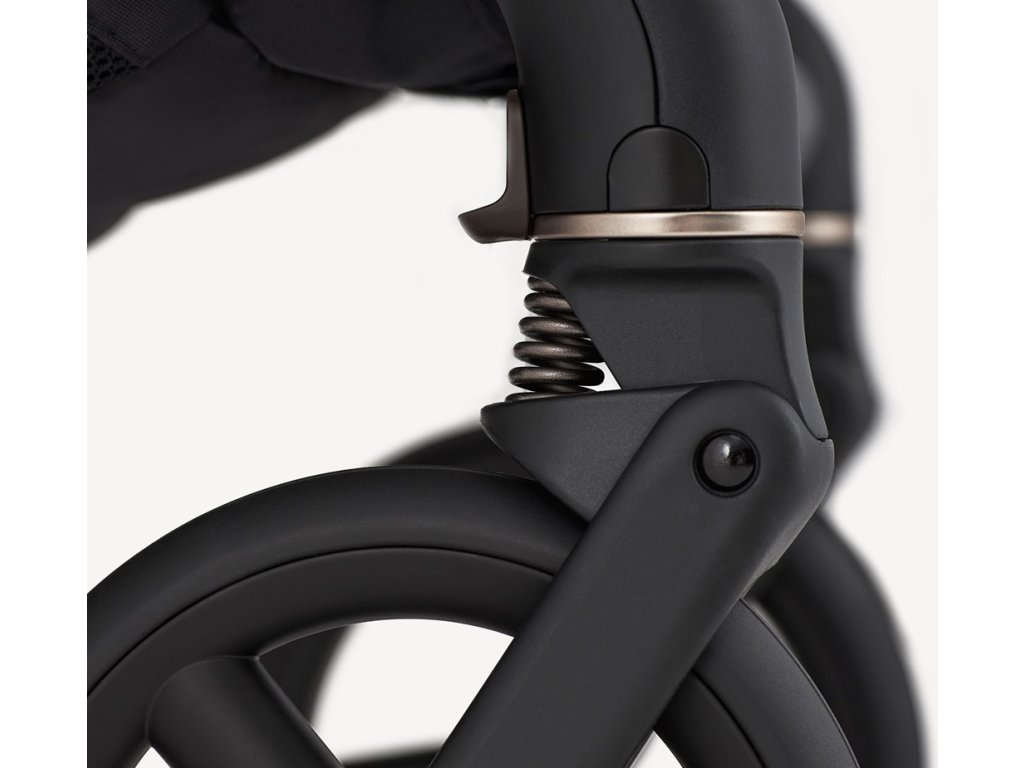 - Wow-odpružení - Do skládacího mechanismu jsme přidali inovativní funkci odpružení, díky které je kočárek „měkký“ i ve verzi s malou sportovní částí. IQ je jediný malý kočárek, který zaručuje tak hladkou jízdu.