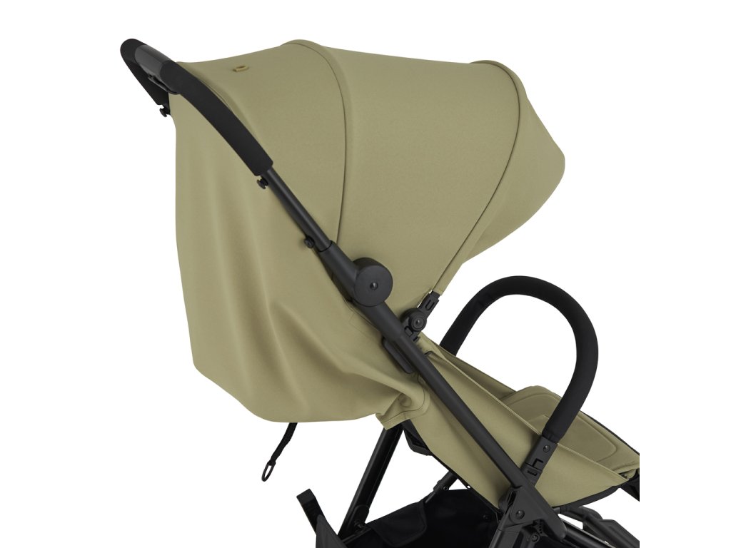 - Opěradlo sedáku lze zcela otevřít pro účinné větrání. Velká stříška chrání před přímým sluncem a ventilace zajišťuje přístup čerstvého vzduchu.