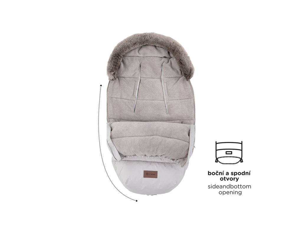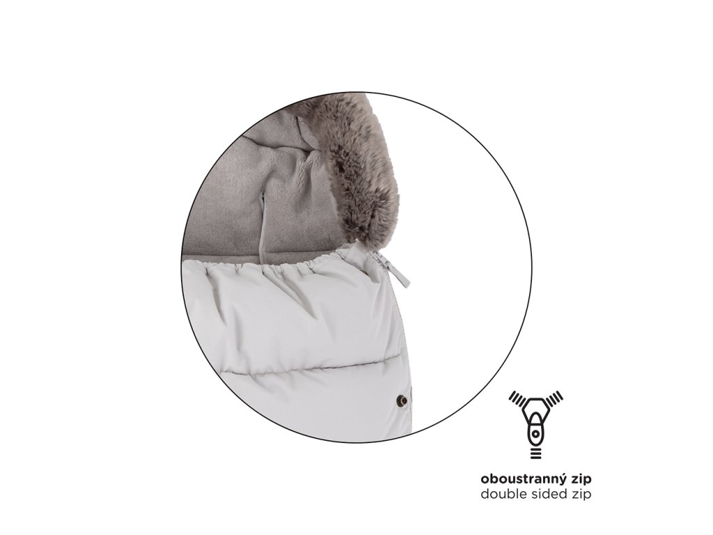 - Regulace teploty díky zipům, které jsou po stranách celého fusaku (lze odepnout celá horní část a spodní část fusaku lze použít jako samostatnou vložku)