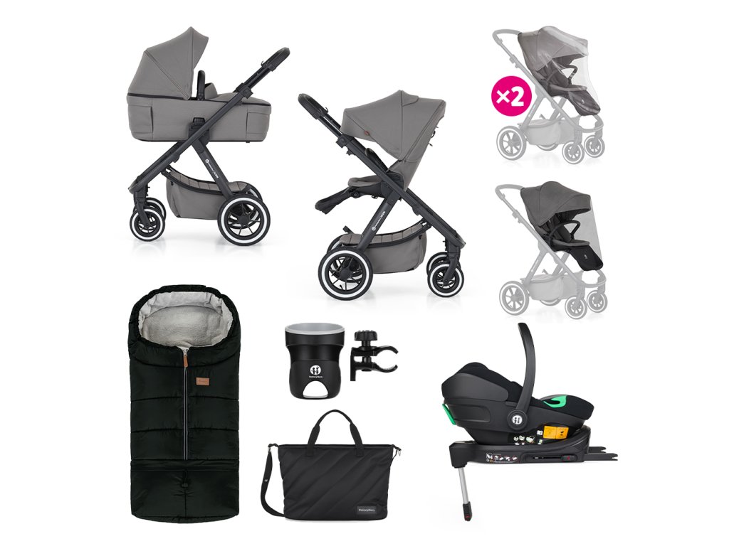 PETITE&MARS Kočárek kombinovaný ICON 2v1 Dove Grey XXL AIR + Core Pro i-Size Black Grey + Báze