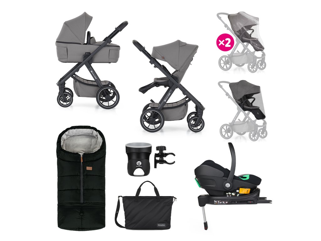 PETITE&MARS Kočárek kombinovaný ICON 2v1 Dove Grey XXL RWS + Core Pro i-Size Black Grey + Báze