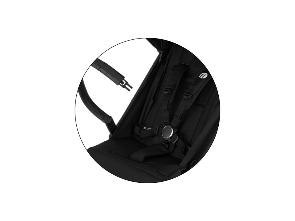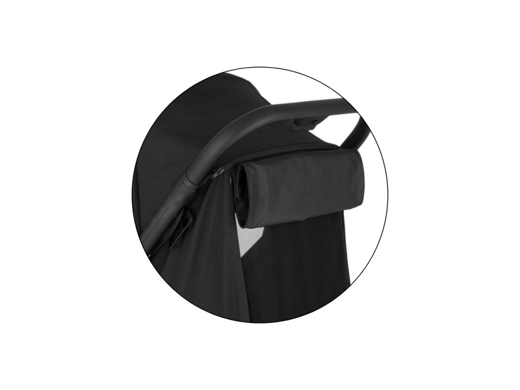 Elegantní černý rám, prošívaný potah a madlo i rukojeť z černé eko-kůže z něj dělají kočárek, který zaujme na první pohled.