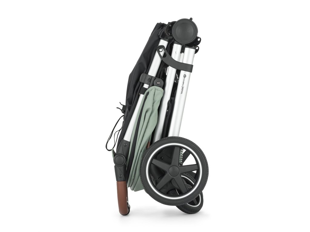 Inovovaná konstrukce kočárku Royal3 ve stříbrné barvě.