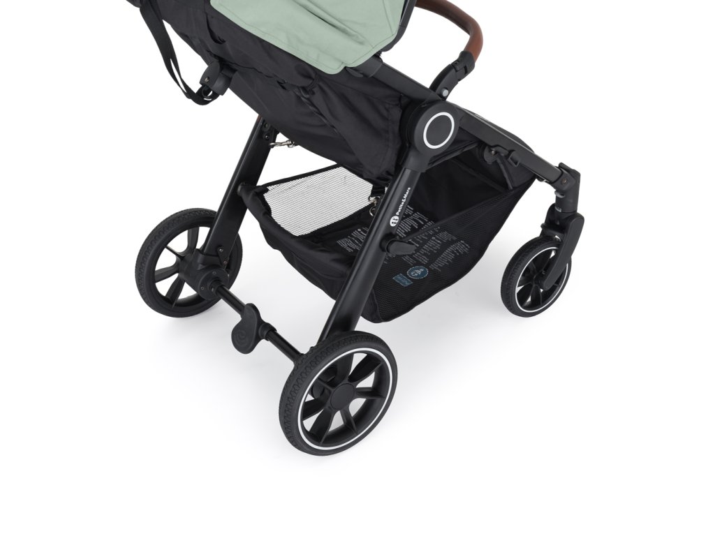 - Kvalitní úchyt kol, který zajišťuje stabilitu kočárku během jízdy.