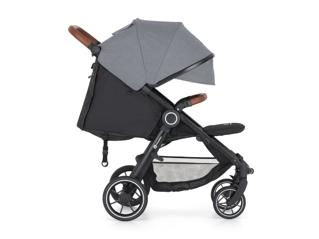 Sportovní kočárek Street2 RWS Oak je díky menším kolečkům lehčí, gumová kolečka mají ale přesto výborné jízdní vlastnosti. Madlo a rukojeť jsou v krásné hnědé barvě.