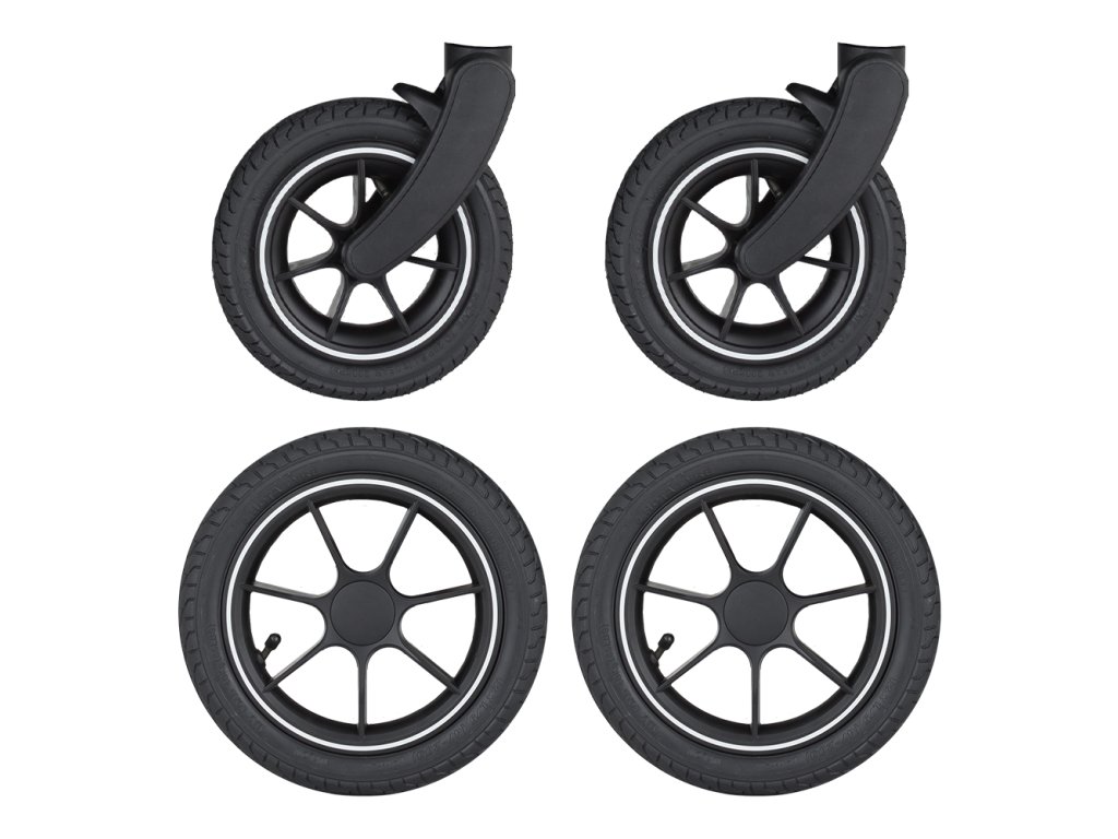 Nafukovací kolečka ke kočárku Street2 Vám pomohou hravě zvládnout nerovnosti chodníku ve městě, ale také cesty v přírodě. Set obsahuje 4 ks kol: 2 přední a 2 zadní kola.