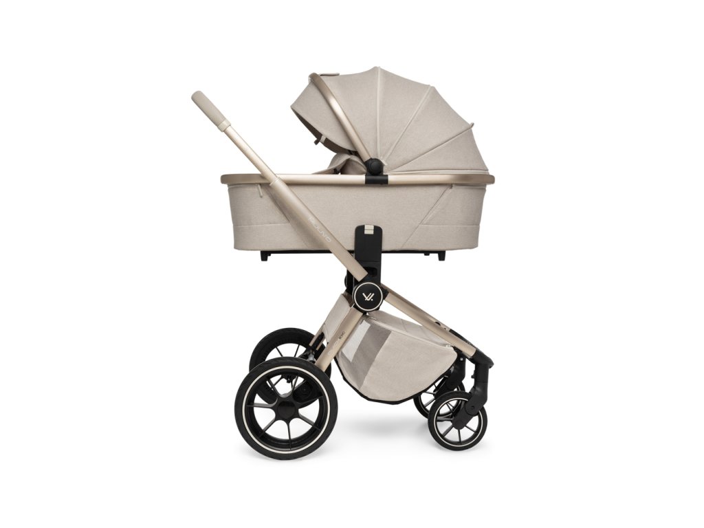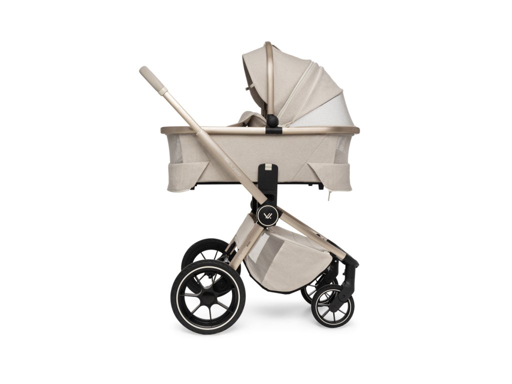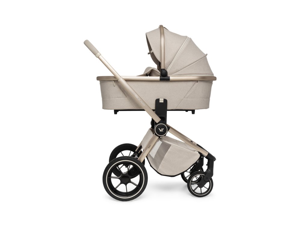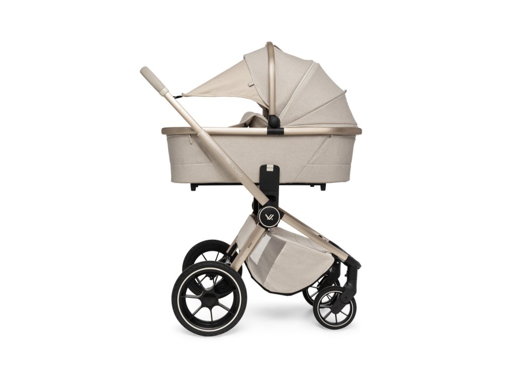 - hlubokou korbu lze nasadit přímo na podvozek, vyšší rodiče ocení možnost nasazení korby na adaptéry zvyšující posazení korby na podvozku pro lepší manipulaci s miminkem
