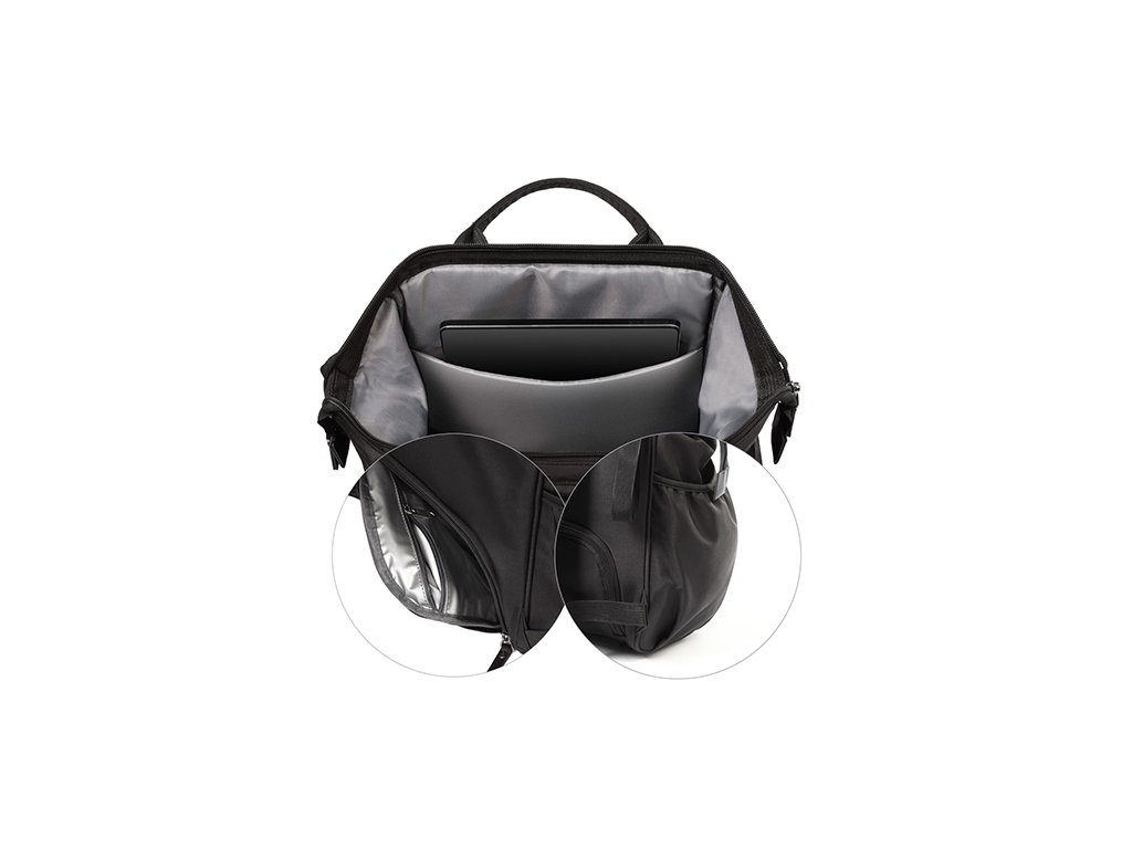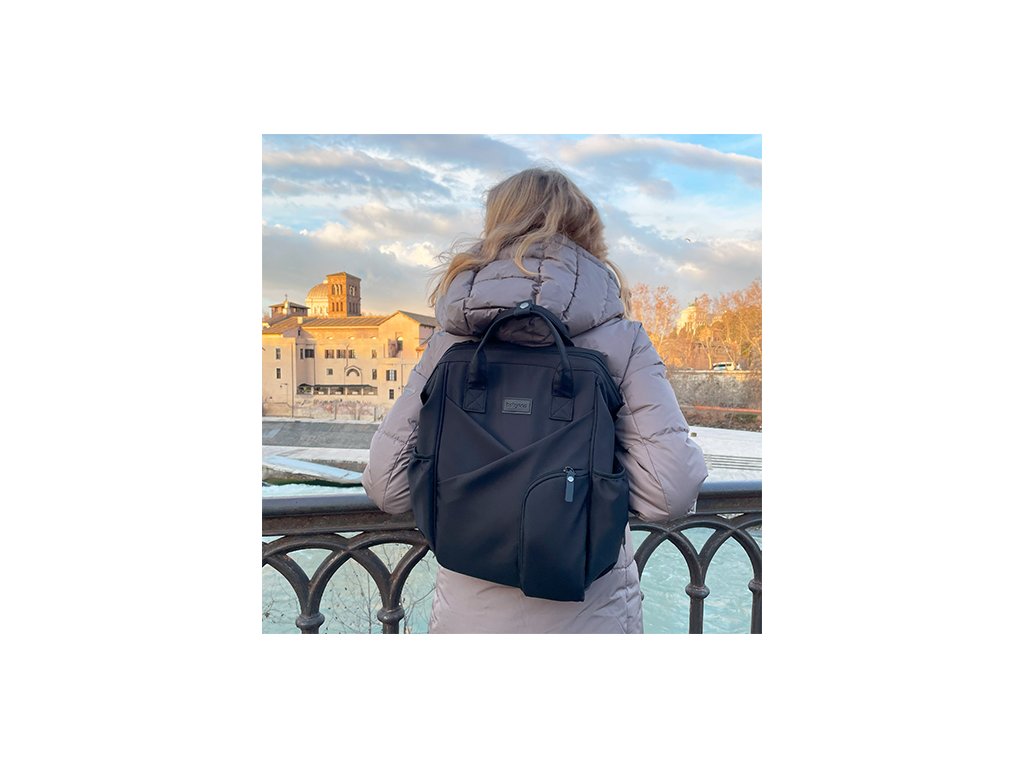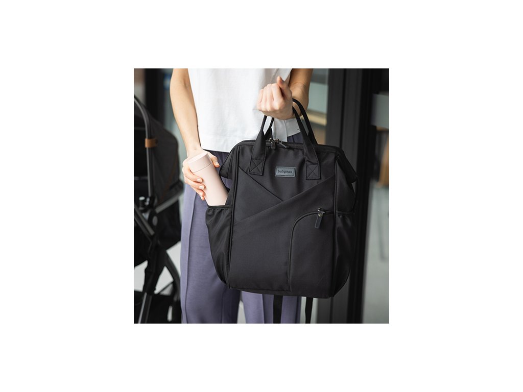 Moderní batoh pro rodiče v elegantním stylu je dokonalým společníkem pro každodenní výzvy. Spojuje kompaktní rozměry s výjimečnou prostorností a originálním designem. Ideální pro milovnice minimalismu a přehledné organizace. Díky prostornosti se do něj vejde vše potřebné – plenky, láhve, knihy, tablet i drobnosti. Uvnitř se nachází až 12 praktických kapes, které vám pomohou udržet pořádek ve všem, co potřebujete pro sebe nebo miminko.