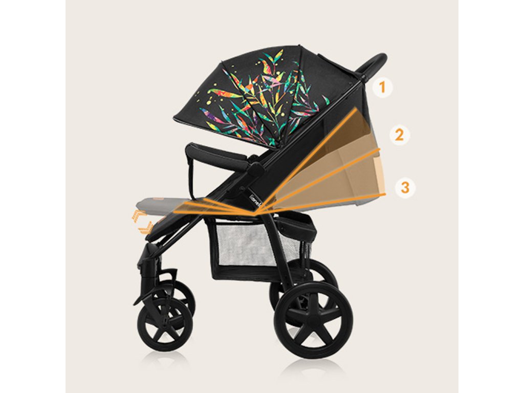 Pohodlí pro dítě: Prostorné sedadlo v kombinaci s 3stupňovým nastavením opěradla přispívají k tomu, že dítě může v kočárku volně odpočívat. Samotné opěradlo lze nastavit do polohy vleže, která umožňuje zdřímnutí. Navíc 6stupňové nastavení výšky opěrky nohou umožňuje dítěti zaujmout ergonomickou a stabilní polohu. V sadě je navíc moskytiéra, nánožník a držák na hrnek, které zvyšují pohodlí na každé procházce.