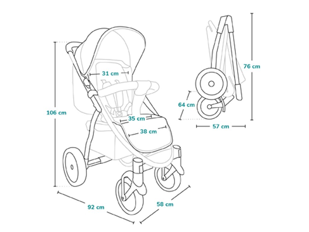 - rozměry složeného kočárku: 76 v x 57 š x 64 d(cm)