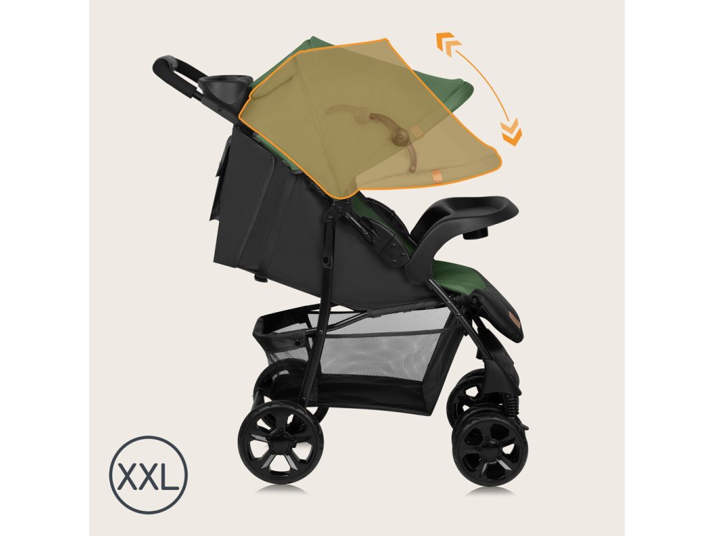 XXL stříška chrání vaše dítě před sluncem, deštěm a větrem a nastavitelná opěrka zad umožňuje polohování polohy ležícího dítěte, což usnadňuje usínání. Kočárek je ideální na procházky, rychlé nákupy a vybavování věcí v městě. Je velmi lehký, takže se snadno přenáší po schodech nahoru i dolů, když není k dispozici výtah. Košík, taška a organizér abyste měli své základní věci vždy po ruce.