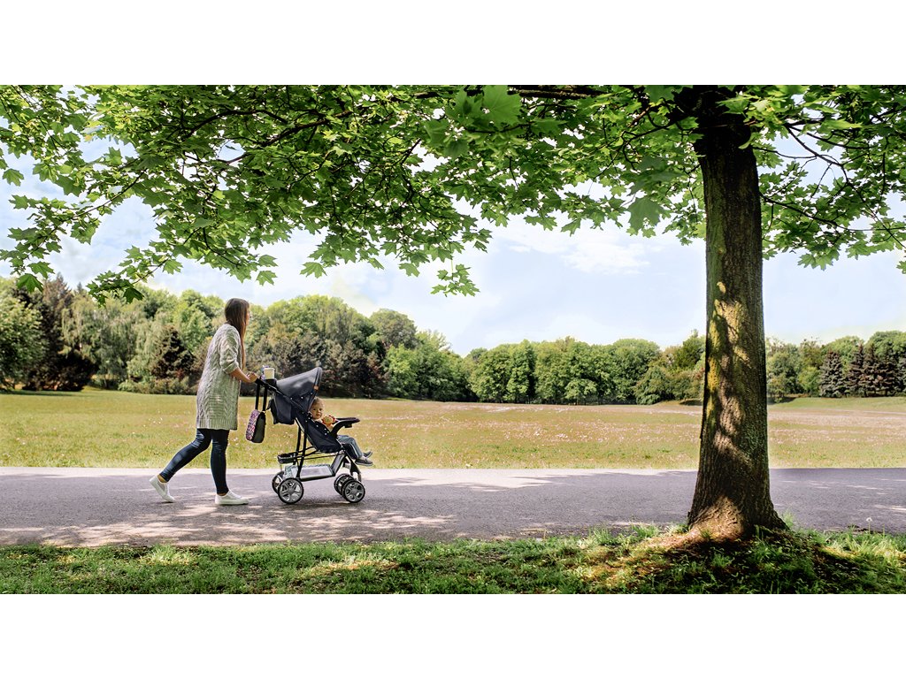 Kompaktní velikost ve složeném stavu: Kočárek se skládá jednou rukou "naplocho"; do kompaktní velikosti. Díky tomu nezabírá mnoho místa například v zavazadlovém prostoru, a může tak být vždy po ruce, připraven na plánované i spontánní procházky nebo nákupy.