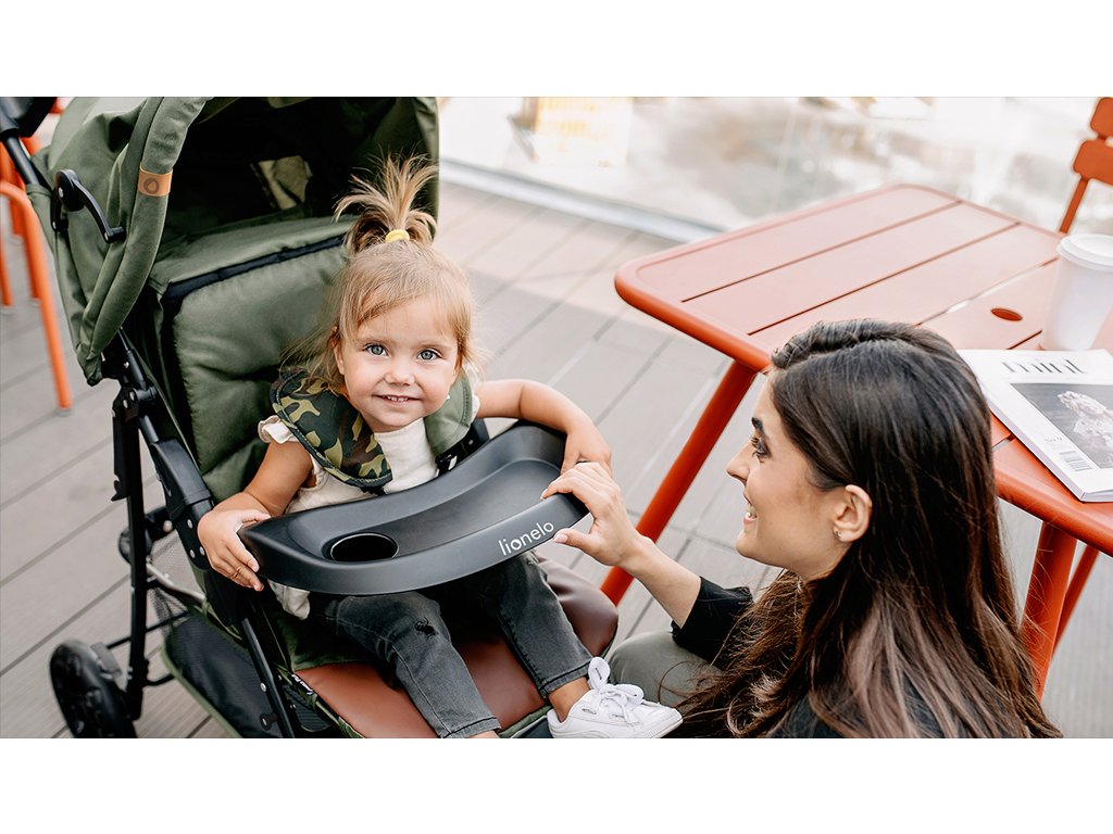 Odnímatelný podnos s držákem na nápoje: Podnos usnadňuje batoleti jezení a pití, ale může také poskytnout další prostor pro tolik potřebné hračky. Kromě toho, také chrání dítě tím, že působí jako bariéra.