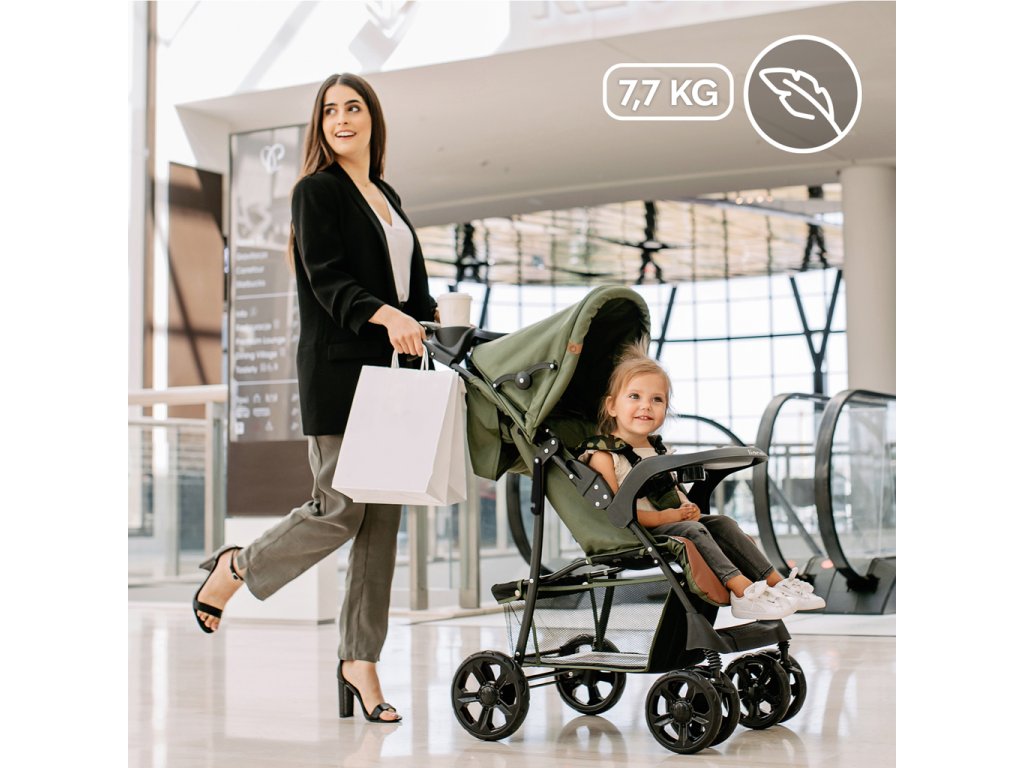 Kočárek je lehký: Nízká hmotnost kočárku usnadňuje každodenní používání, například jeho vkládání nebo vyjímání z kufru a přenášení do schodů. To je důležité pro pohodlí pečovatele a jeho záda - v některých situacích se počítá každý kilogram.