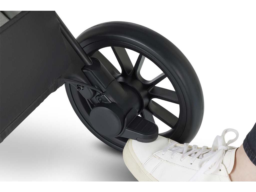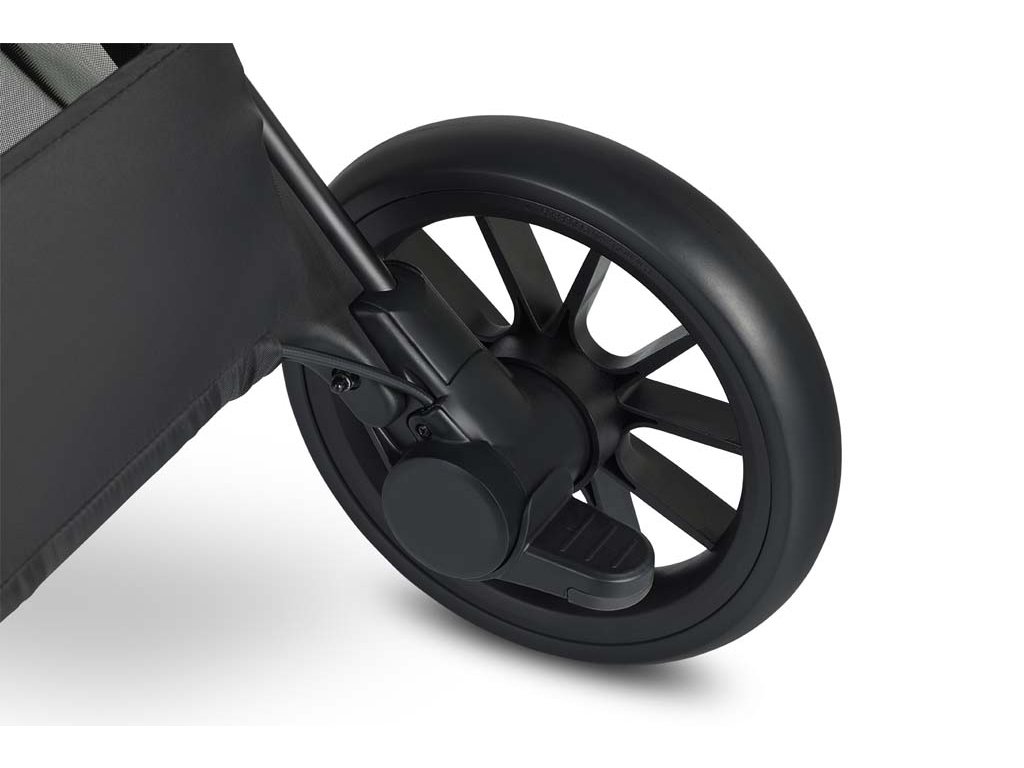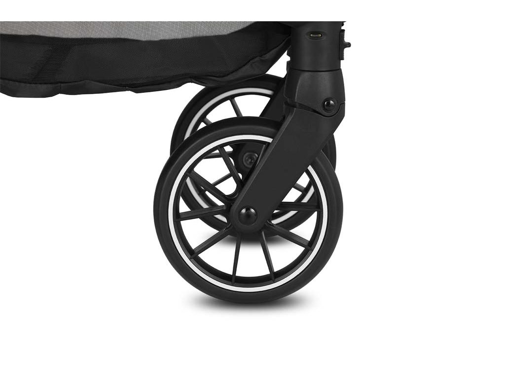 - styl kočárku podtrhuje rukojeť a madlo z ekokůže