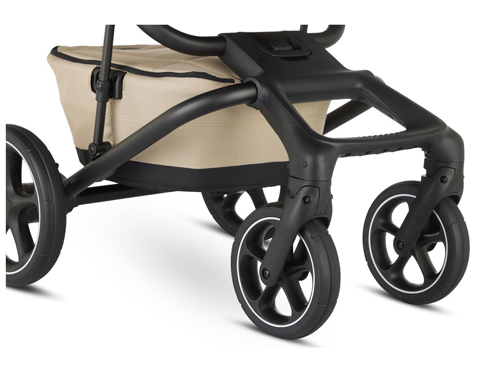 Vaše dítě bude mít vždy pohodlí v mimořádně prostorné, pohodlné korbičce s ochranným polštářem. A časem bude toto pohodlí pokračovat i ve sportovní sedačce, kterou lze sklopit úplně do roviny, čímž zajistí klidný spánek na procházkách. Mysleli jsme také na vaše pohodlí. Lehce měnitelná bezstupňová rukojeť se posouvá do libovolné výšky a sedátko lze nastavit do čtyř různých poloh, a to jen jednou rukou. Pokud jde o úložný prostor, nákupní košík je nejen velmi prostorný, ale také odnímatelný, což usnadňuje vybalení nákupu. Navíc, pokud budete chtít Jimmey sundat, jeho přeměna na kompaktní 12kilogramový balík vám zabere jen pár vteřin. A pak je zde luxus. Super měkká matrace s přírodním potahem TencelTM šetrným k pokožce zaručuje příjemnou jízdu. Na dotek jemné, sofistikované madlo a rukojeť z ekokůže si prostě zamilujete. A nádherná udržitelná tkanina vyrobená z recyklovaných PET lahví, dostupná v pěti elegantních barvách, znamená, že budete styloví při jakékoli příležitosti.