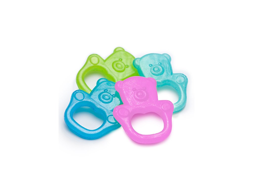 Vyrobeno z bezpečného materiálu. Zaoblené tvary a speciálně vybrané barvy pomáhají děťátku cvičit uchycení předmětů do dlaně, přendávání z jedné ruky do druhé a poznávání barev.
