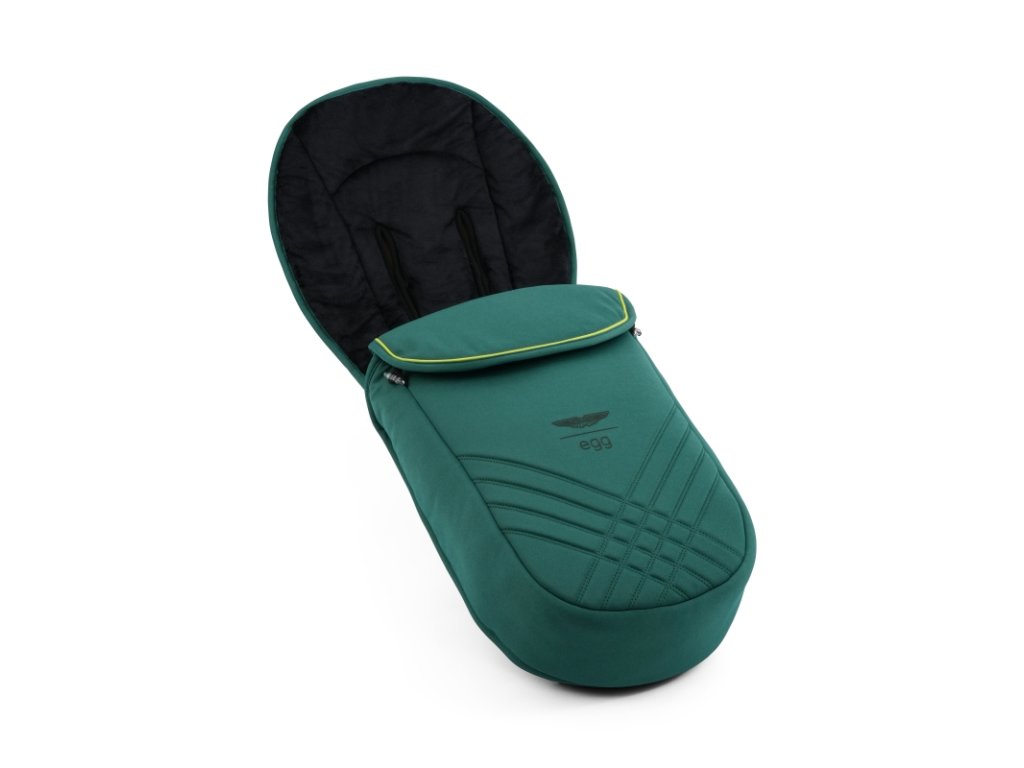 Z jedinečného propojení dvou ikon britského řemesla se zrodil kočárek Aston Martin egg3® – mistrovská kombinace precizního inženýrství a nadčasového designu. Nezaměnitelný rukopis značky Aston Martin se dokonale prolíná s ikonickými liniemi kočárků egg®, které zde podtrhuje ikonická zelená textilie – luxusně měkkou na dotek a vizuálně bohatou na texturu – s precizním limetkovým lemováním. Každý jeho prvek, včetně jemného limetkového lemování zvýrazňující elegantní siluetu, odráží tradici výkonu a stylu.