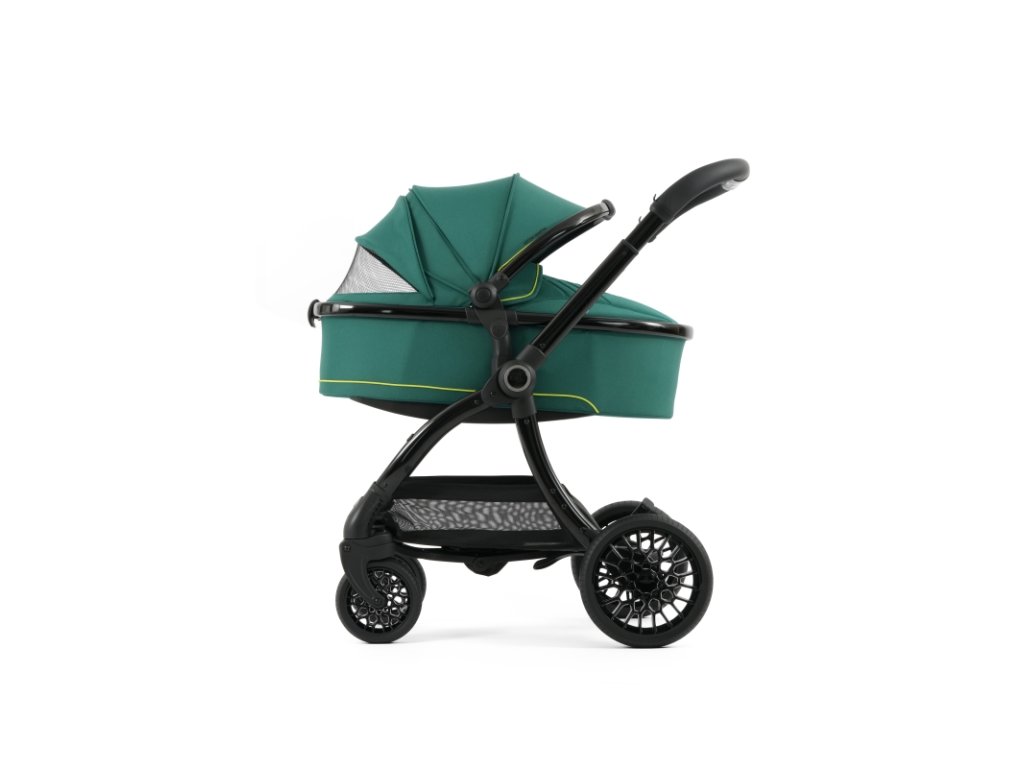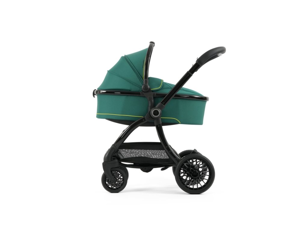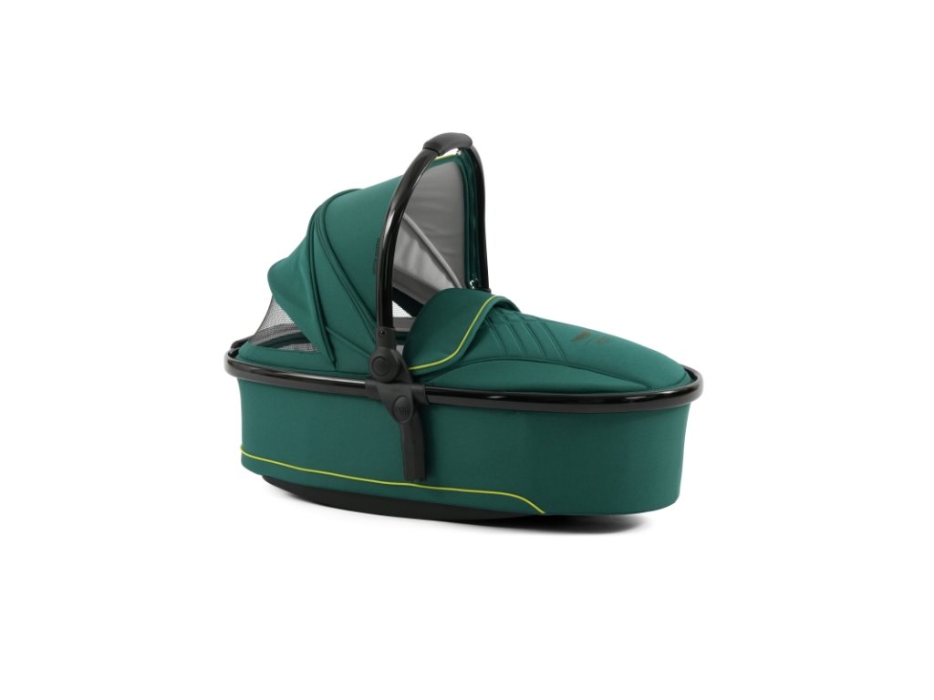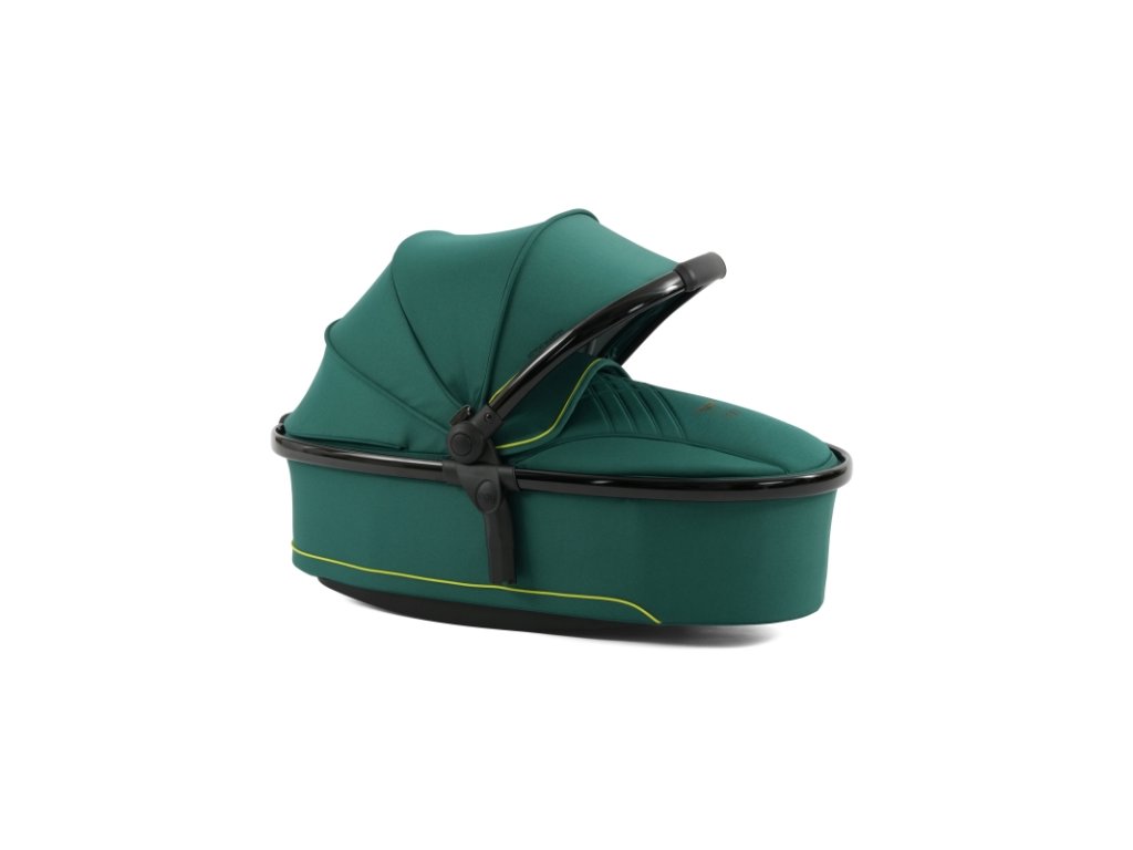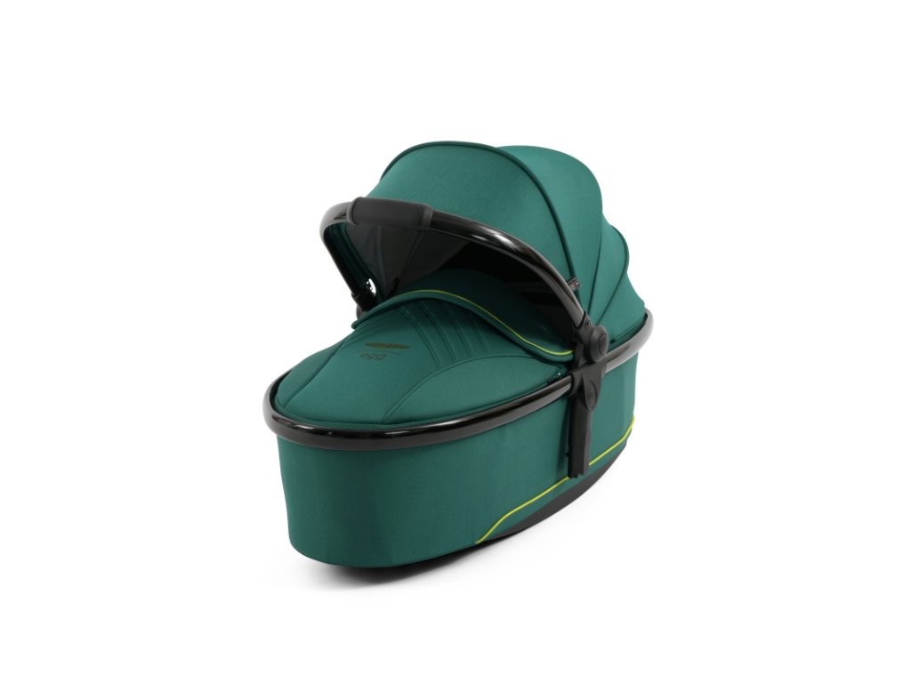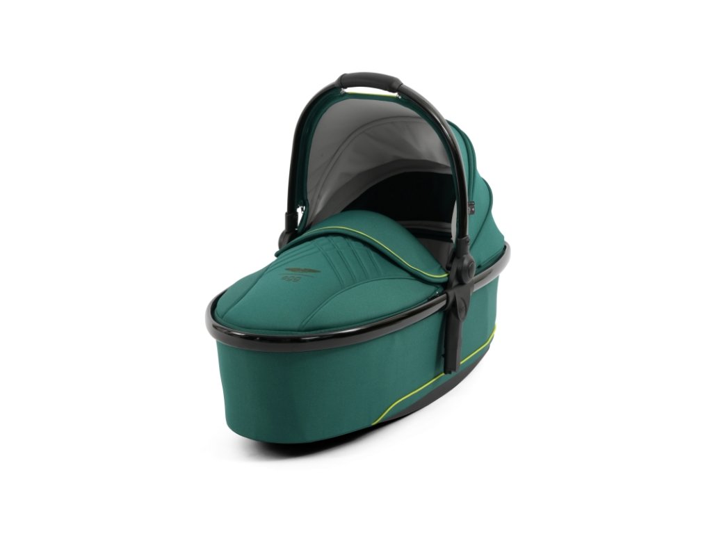 Hluboká korba Aston Martin egg3® je dokonalým ztělesněním luxusu i díky signifikantnímu lemování v limetkové barvě. Dále je zde zahrnuto kožené madlo Bridge of Weir a odvětrávaná stříška s ochranou UPF 50+. O pohodlí novorozence se stará prodyšná matrace Sorona® a houpací lišty, které jemně kolébají při odpočinku v interiéru domova. Nánožník zdobí ikonické prošívání DBX707 odkazující na automobilové dědictví, zatímco ergonomické uvolňovací madlo čerpá inspiraci ze stejného motivu, přetvořeného do precizně zpracovaných kovových detailů. Korba je schválena pro celonoční spánek a zajišťuje absolutní komfort jak doma, tak na cestách.