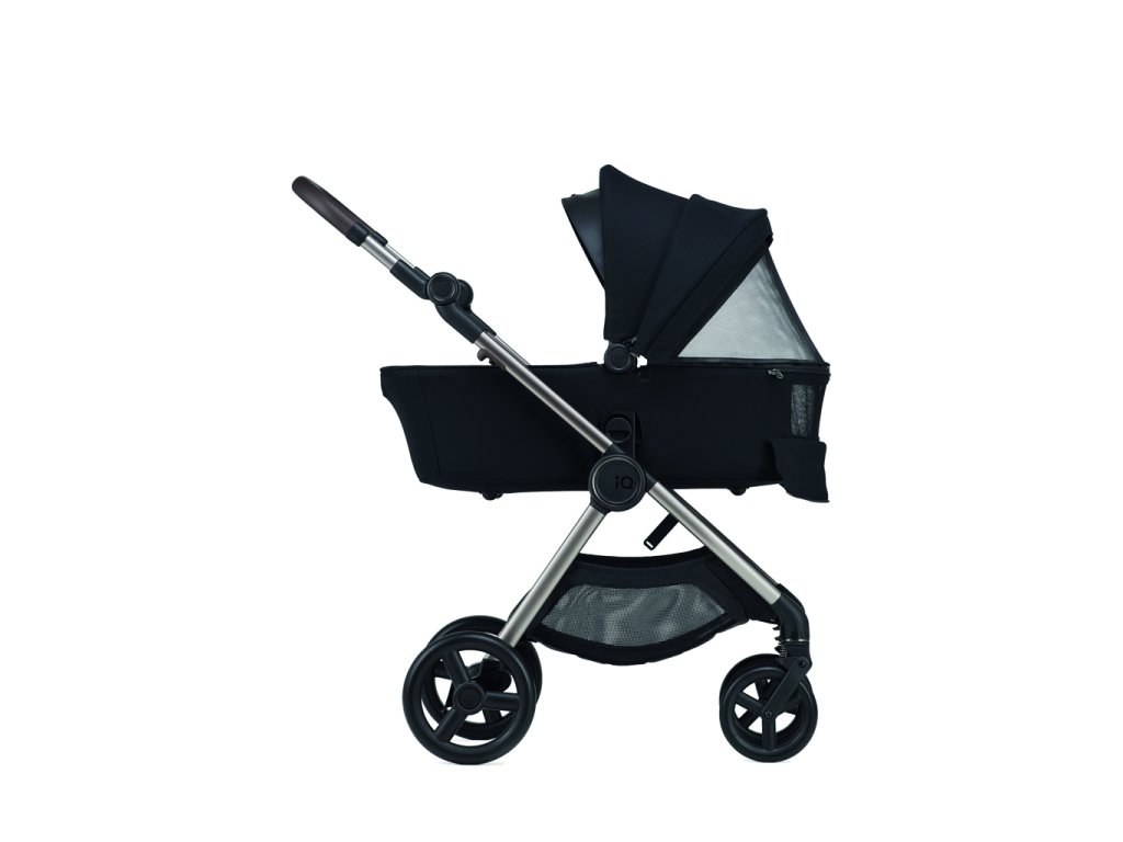 Aby bylo vaše děťátko v pohodlí, IQ má důmyslný prodyšný systém, který zajišťuje větrání na všech správných místech – od stříšky, korbičky a stříšky sedáku až po opěrku nohou. Opěrka zad je také vybavena větráním ze síťoviny.