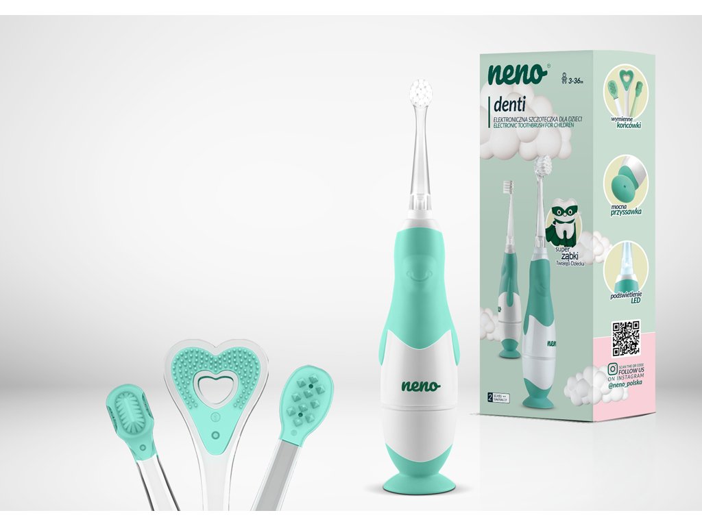Postarejte se o zdravý a krásný úsměv vašeho dítěte s elektrickým zubním kartáčkem Neno Denti – speciálně navrženým pro jemné dětské zoubky a zdravou ústní hygienu od prvních měsíců. Tento kartáček pomáhá naučit děti správné péči o zuby a dásně jednoduchým a zábavným způsobem.