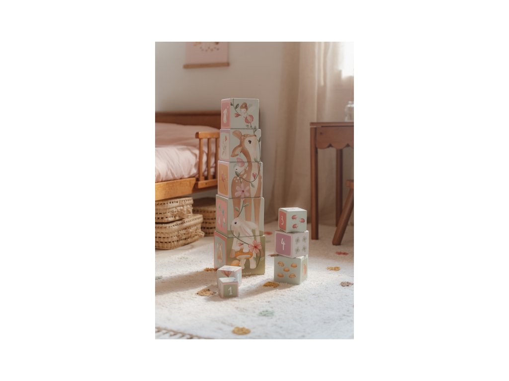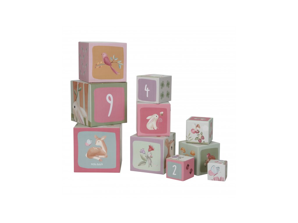 Barevné kartonové kostky s krásnými ilustracemi motivů ze života na zahradě. Nechte vaše dítě kostky skládat na sebe do vysoké věže nebo vedle sebe podle velikosti. Ve starším věku se dítě s pomocí očíslovaných kostek může hravým způsobem učit počítat i rozpoznávat číslice.