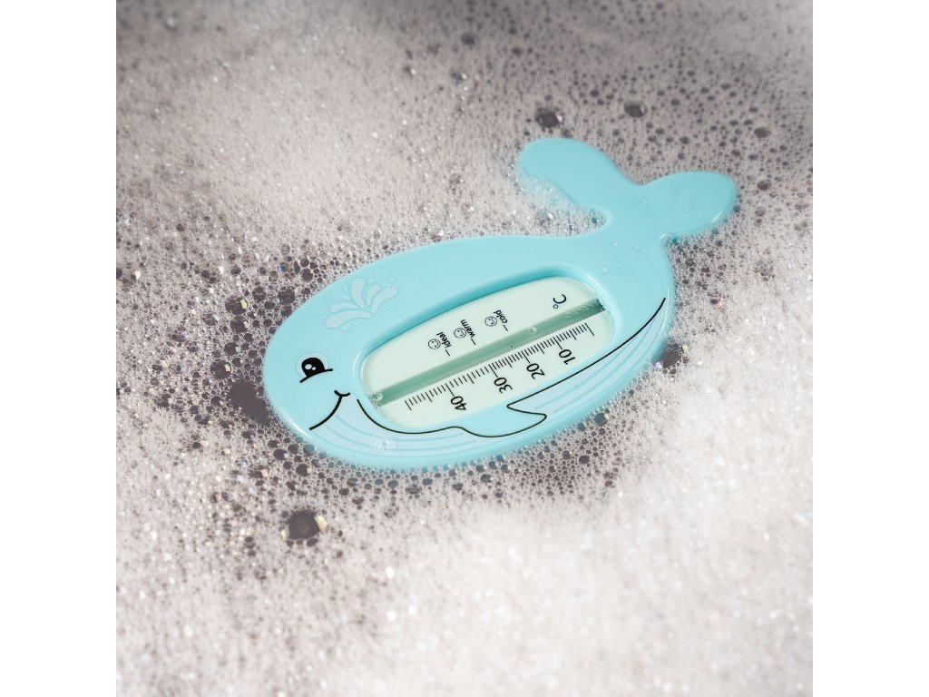 Teploměr má přehlednou stupnici, díky které lze okamžitě vyčíst teplotu vody. Pro ještě snadnější kontrolu jsou na stupnici vyznačeny symboly/emotikony, které ukazují, zda je voda příliš studená, horká, nebo má optimální teplotu. Rodiče tak mají jistotu na první pohled.