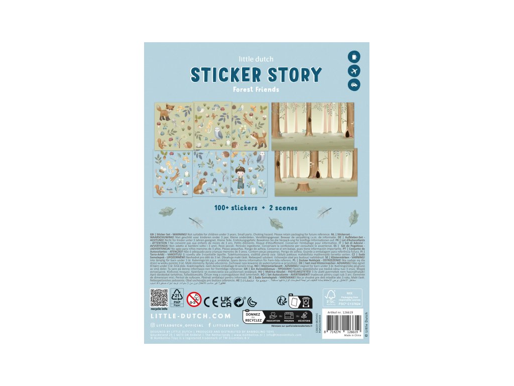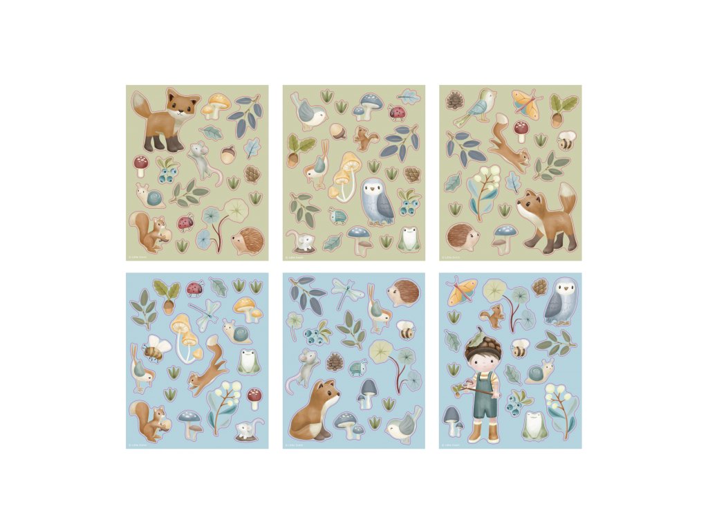 Sada šesti archů krásných samolepek z kolekce Little Dutch Forest Friends s krásnými motivy ze života v lese. Samolepky jsou vhodné pro lepení na papír.