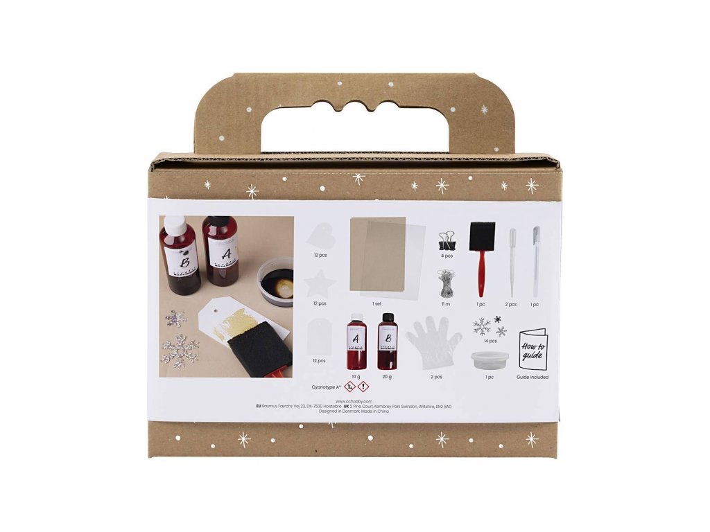 Elegantní kreativní sada pro dospělé, která přináší kouzlo výtvarné techniky kyanotypie přímo k vašemu vánočnímu balení dárků. Vytvořte si vlastní originální visačky v odstínech modré – jedinečné, stylové a osobní.