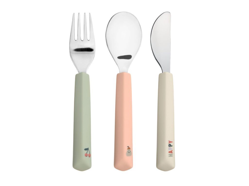LÄSSIG Cutlery with Silicone Handle 3pcs Happy Fruits cherry