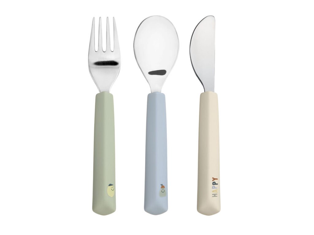 LÄSSIG Cutlery with Silicone Handle 3pcs Happy Fruits lemon