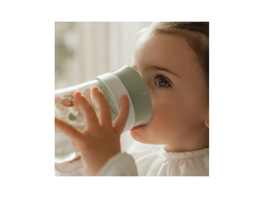 Trénovací hrnek je ideální pro děti, které se učí pít z klasického hrnku. Silikonové víčko se systémem 360° umožňuje pít z kteréhokoli místa po obvodu hrnku bez rizika rozlití. Tekutina teče z hrnku po naklonění k ústům dítěte kontrolovaným způsobem, takže dítě na sebe při pití obsah hnku nevylije. Víčko zároveň umožňuje uzavřít obsah hrnku pro bezpečné přenášení.