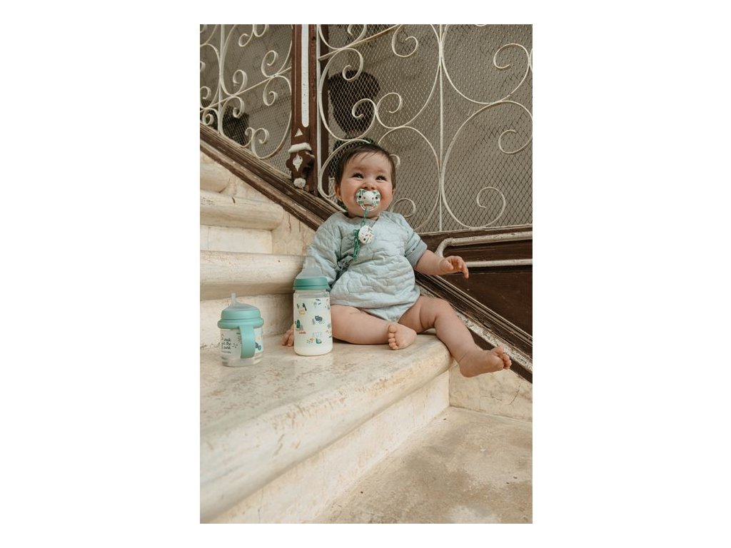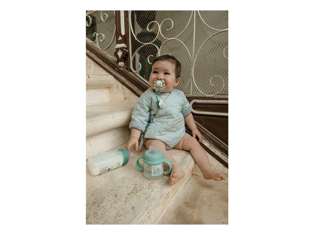 Druhá láhev s oušky se speciální SX ProTM antikolikovou savičkou usnadňuje přechod z kojenecké láhve na pití z hrníčku či sklenice. Silikonové pítko je měkké a materiálově shodné se savičkami kojeneckých lahví a dudlíků SX ProTM . Proto ho Vaše děti přijmou rychleji než běžná tvrdá pítka.