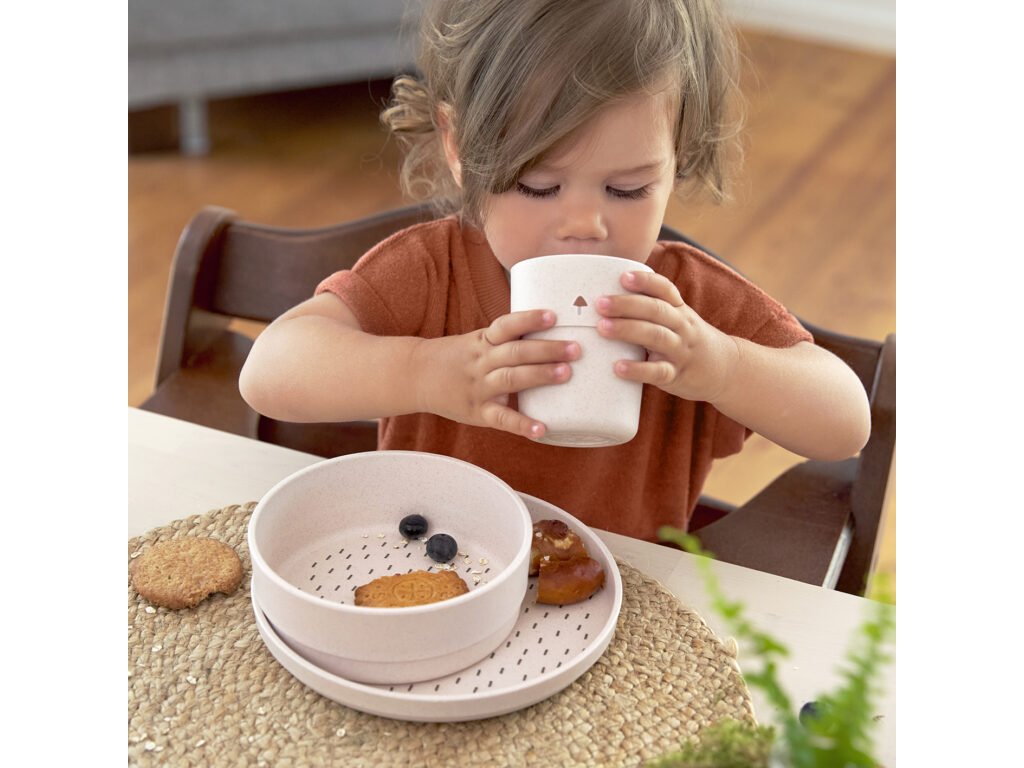 Lehký dětský talířek v krásném designu, vyrobený za použití trvale udržitelných zdrojů, je určený pro děti od 6 měsíců.