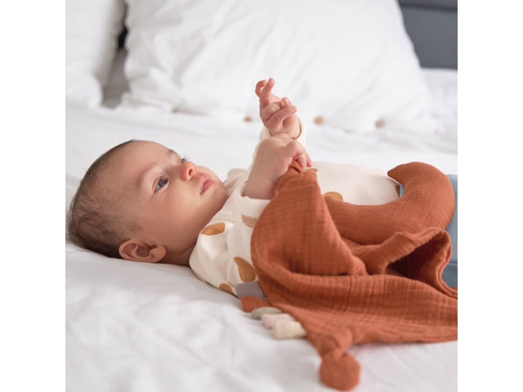 Měkký mušelínový hajáček slouží dítěti jako plyšová hračka, společník před spaním a náhradní dudlík. Ideální pro děti, které se rády choulí.