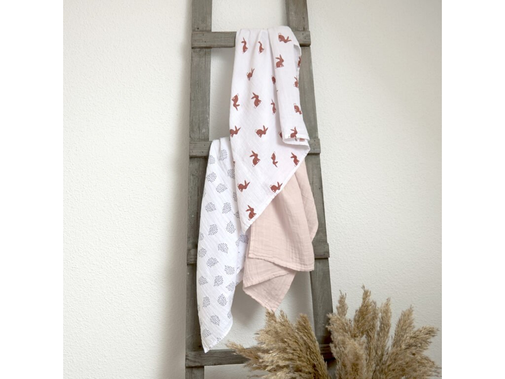 LÄSSIG Swaddle Burp blanket 60x60 Little Forest 2025 rabbit
