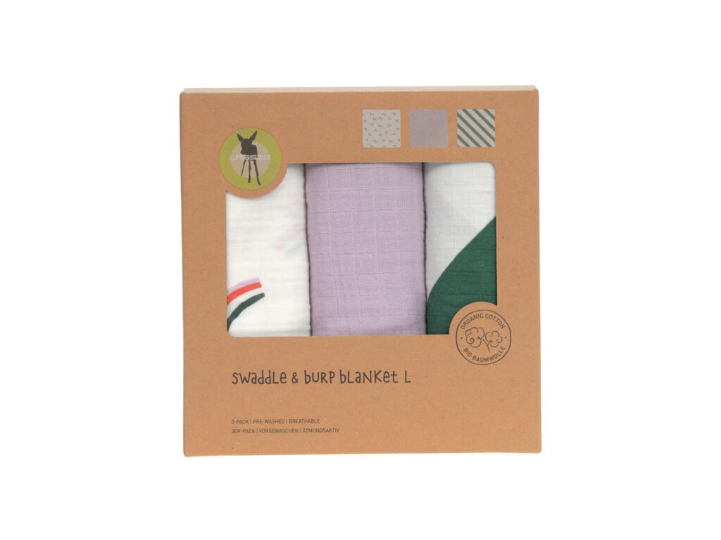 LÄSSIG Swaddle Burp blanket 85x85 2024 Happy Rascals lavender