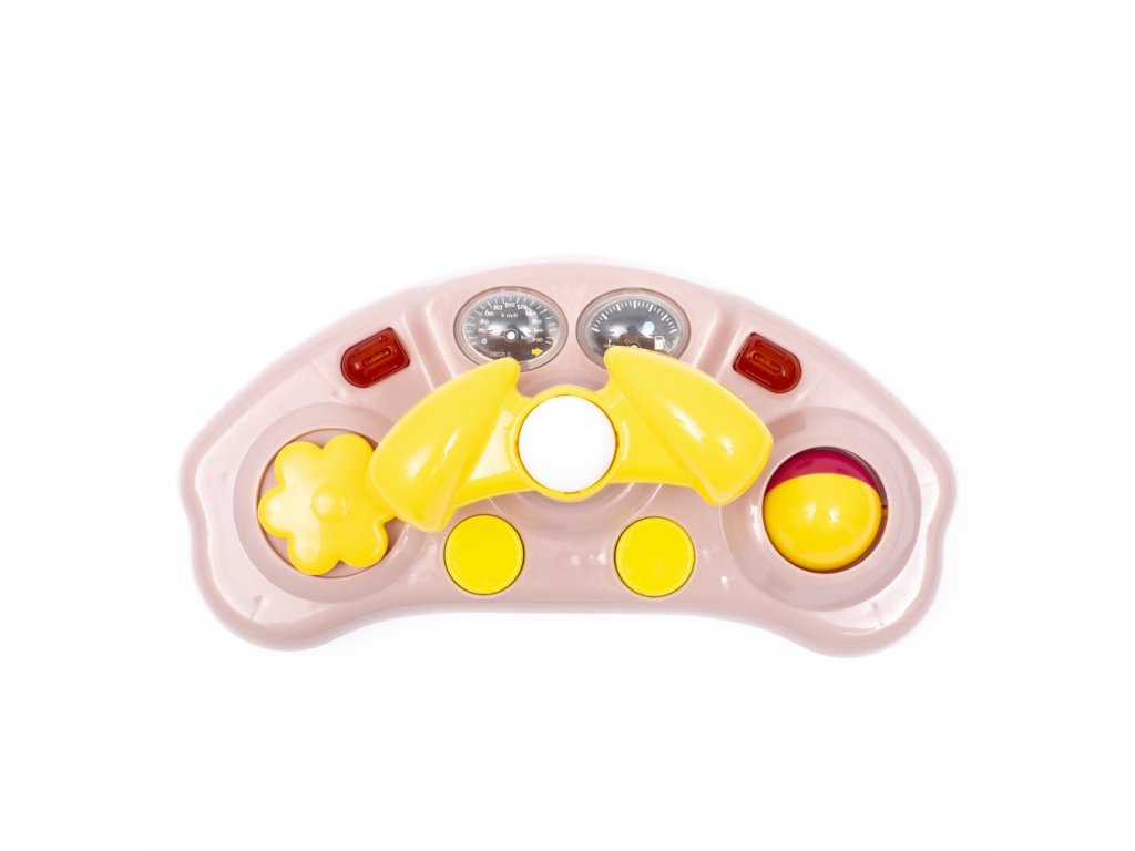 - Multimediální panel se zvukovými a světelnými efekty, 12 hracích melodií, klakson s otočným volantem (napájeno 2x1,5V AA bateriemi - nejsou součástí balení)