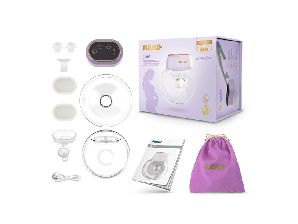 Neno Sole je inovativní bezdrátová handsfree odsávačka mateřského mléka díky které toho zvládnete opravdu hodně. Její lehká a malá konstrukce se vejde bez námahy do košíku podprsenky ke kojení a umožní Vám tak mít volné ruce. Přenosná odsávačka pastelové barvy je naprosto bezdrátová, má přehledný dotykový ovládací panel a velký objem, kam se vejde až 210 ml mléka. Odsávačka mléka funguje na základě tří fází s 8 úrovněmi nastavení. Má anatomický prsní štít ve tvaru prsu, který lze zmenšit z 24 mm na 20 mm.