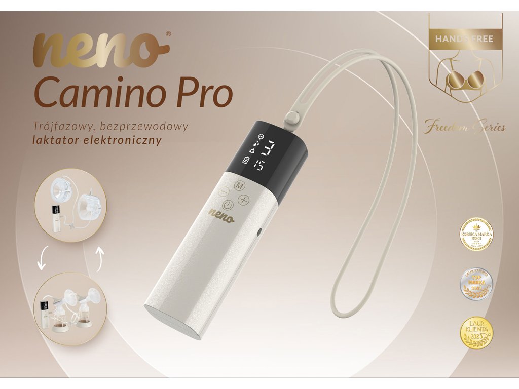 Neno Camino Pro je třífázová bezkabelová elektronická odsávačka mateřského mléka ze série Freedom. Přináší svobodu a pohodlí novým maminkám, které musí sloučit péči o miminko, domácnost, práci a vlastní pohodu.