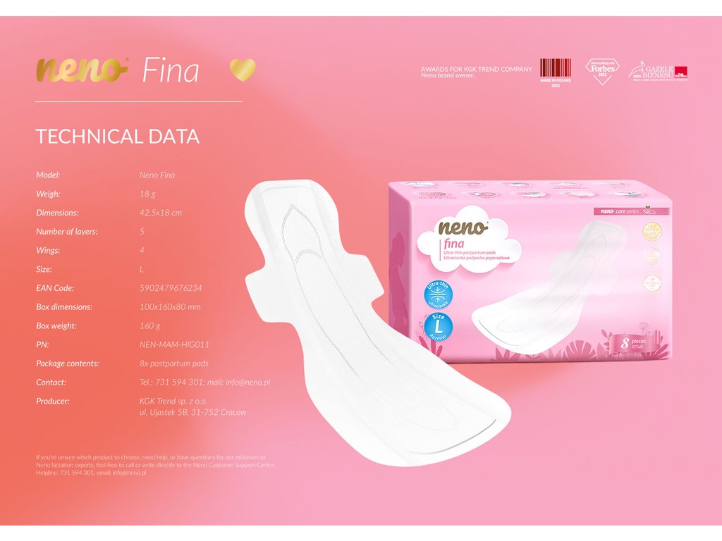 Poporodní péče s důrazem na pohodlí a spolehlivost. Vložky Neno Fina jsou navrženy tak, aby vám poskytly diskrétní ochranu a pocit svěžesti během nejnáročnějších dnů po porodu.
