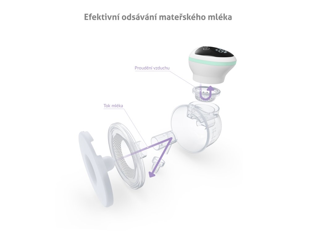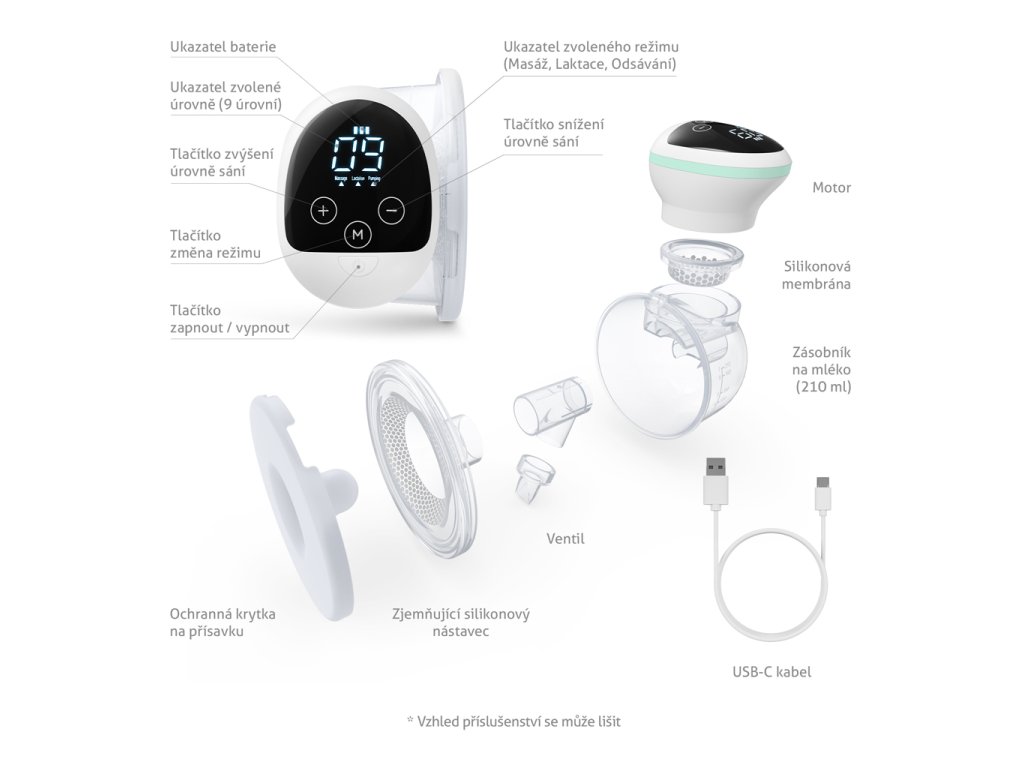 - Odsávání probíhá automaticky díky elektrické pumpě. Zařízení je celistvý kus na baterii pro možnost pohodlně jej nosit s sebou i na cesty.