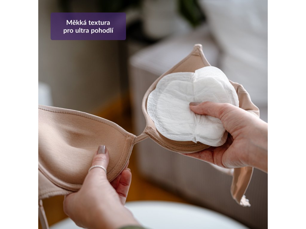 Jemný bavlněný povrch s netkaným vlnitým vzorem a tloušťkou pouhých 1 mm činí vložky pro okolí neviditelné. Nic to však neubírá na jejich účinnosti, vstřebají až 120 ml mléka.