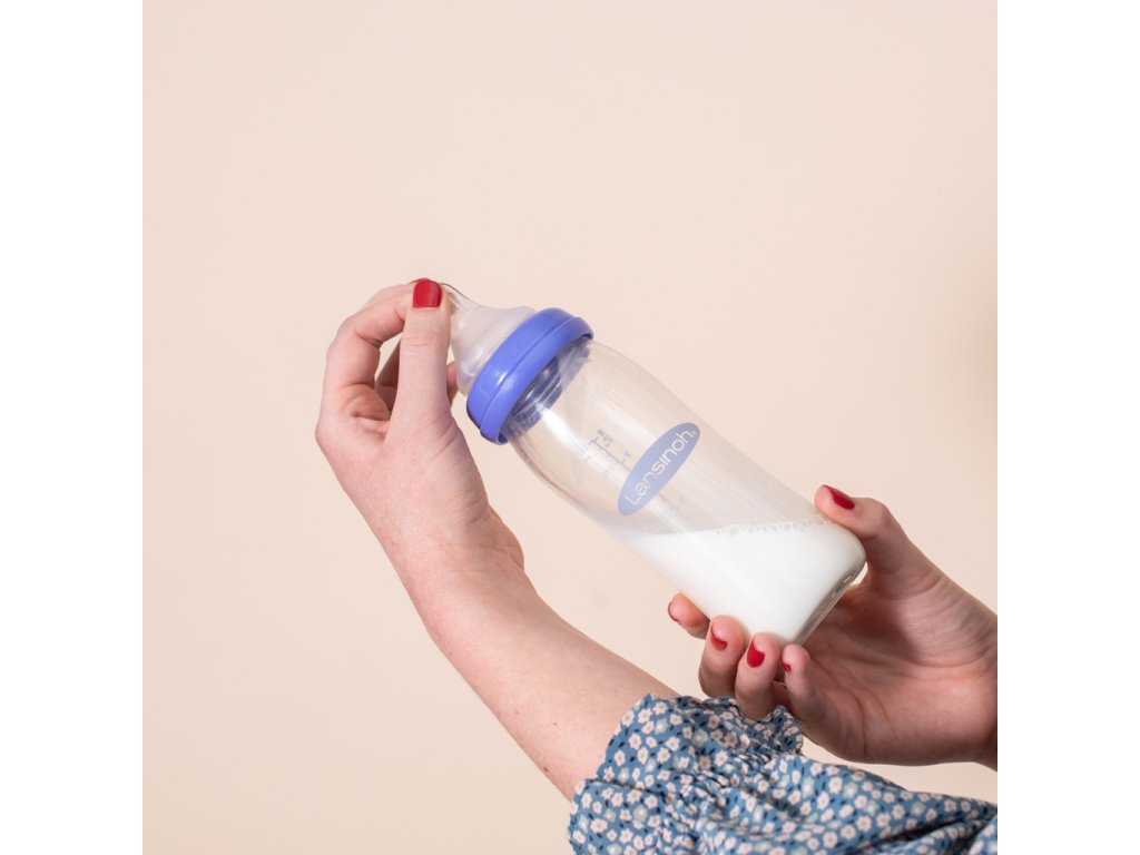 Sklo je nejvíce inertní materiál, který se používá k výrobě kojeneckých lahví. Nedochází při něm k žádné molekulární výměně mezi obsahem láhve a lahví samotnou. Velmi snadno se čistí a sterilizuje. Lansinoh skleněné láhve jsou vyrobeny ze speciálního materiálu, který se nazývá borosilikát. Borosilikátové sklo je méně husté a více odolné tepelným šokům a často se používá v laboratořích. Je šetrnější pro životní prostředí a je 100% ekologické a 100% recyklovatelné.